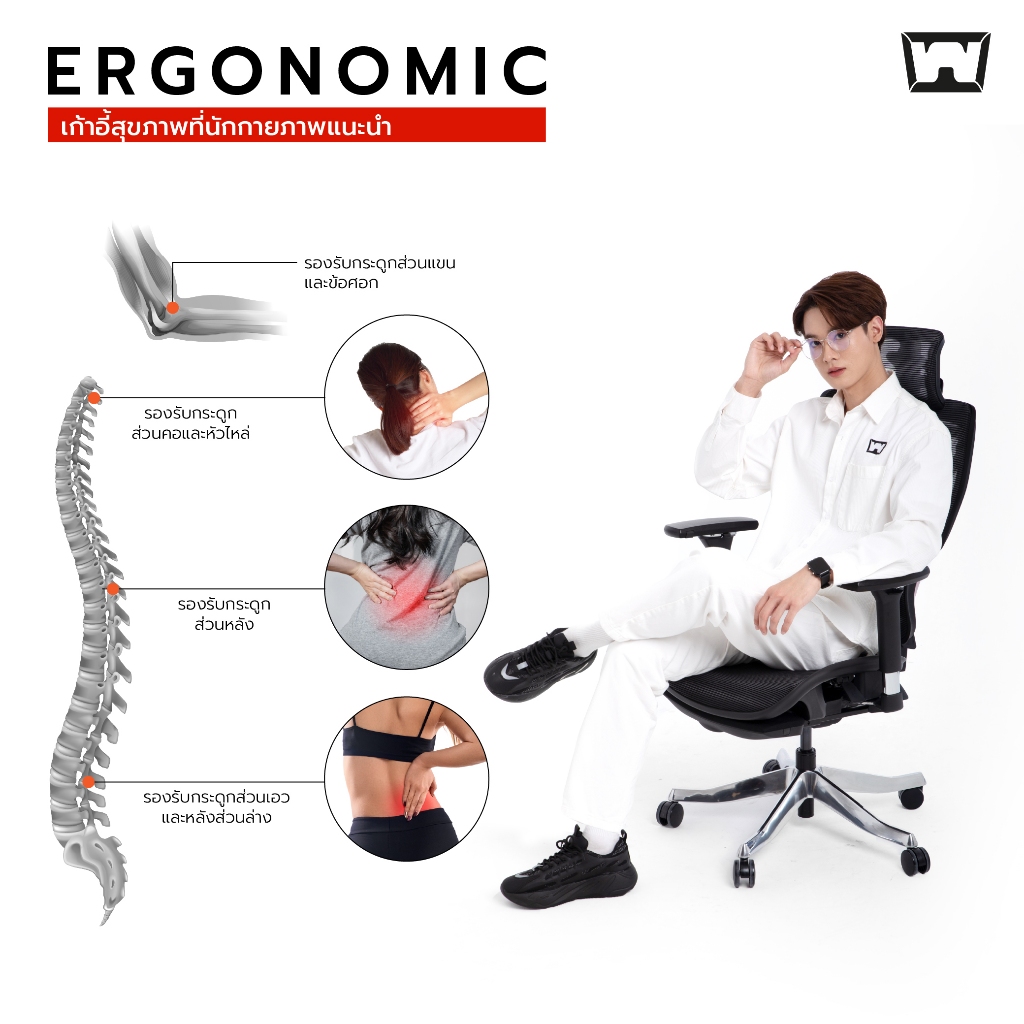 ไม่ใช่แค่นั่งสบาย สามารถรองรับกับสรีระของแต่ละคน รวมถึงช่วยให้สามารถจัดท่านั่งในการทำงานได้อย่างเหมาะสมและเป็นไปตามหลักการสรีรศาสตร์