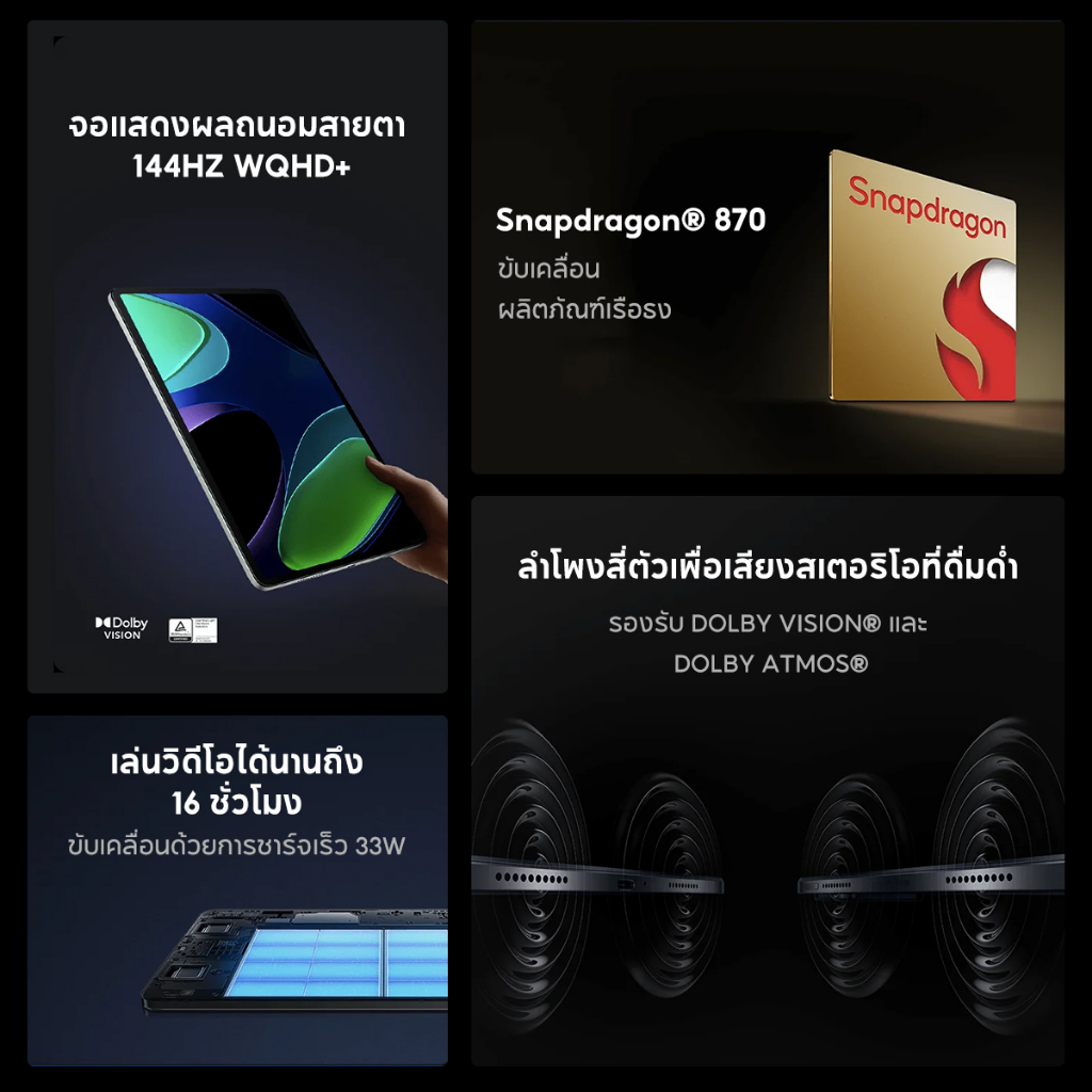 Xiaomi Pad 6 8GB+128GB / 8GB+256GB Ultra-HD สูงสุด 144Hz
