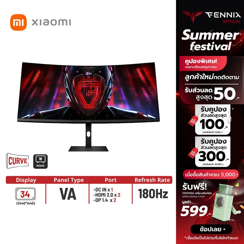Xiaomi Redmi Monitor Gaming Curved 34″ รุ่น G34 180Hz WQHD 3440*1440 รุ่นใหม่ ปี 2024 รับประกัน 1 ปี