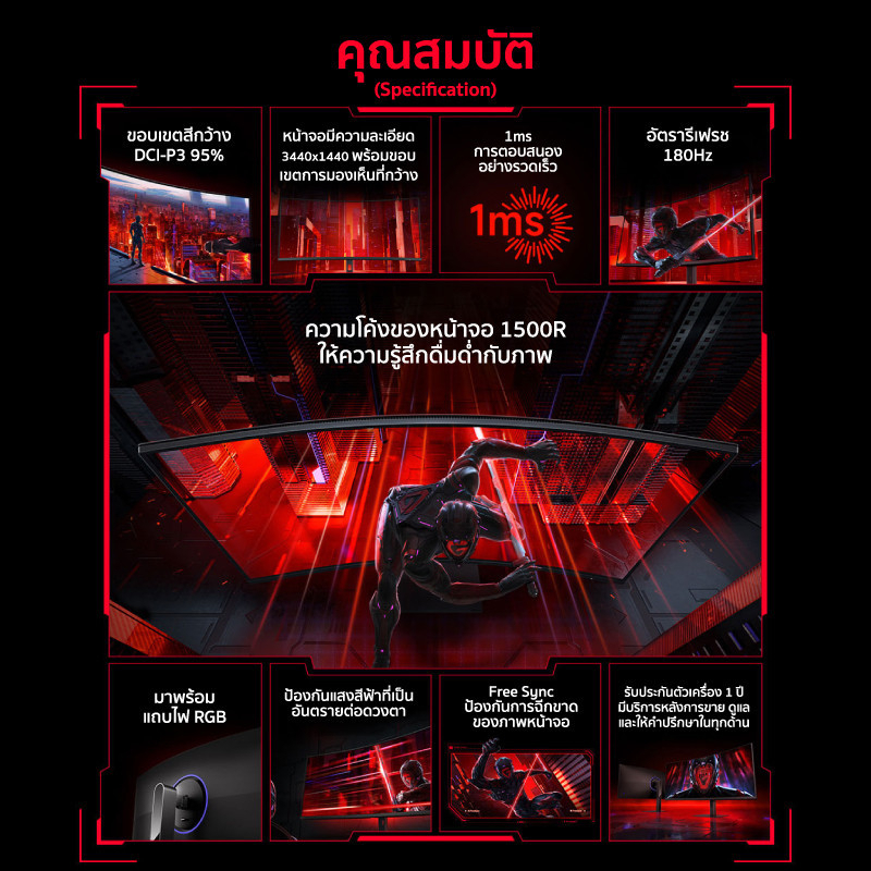 • ความโค้งของหน้าจอ: 1500R