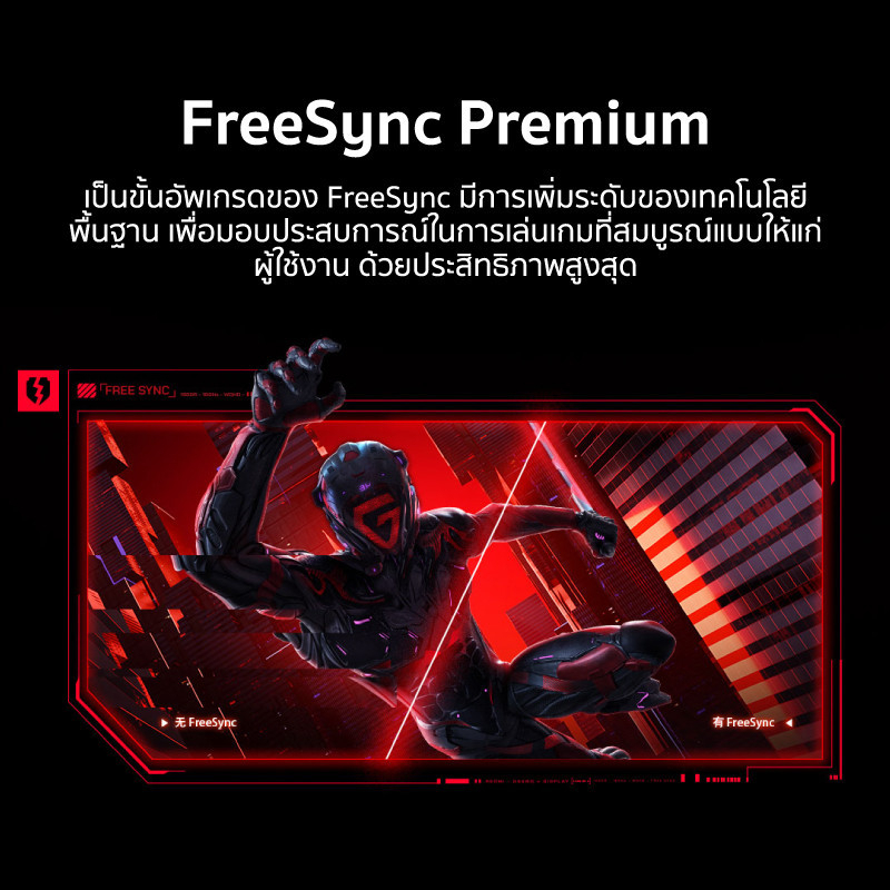 • AMD FreeSync Premium เป็นขั้นอัพเกรดของ FreeSync มีการเพิ่มระดับของเทคโนโลยีพื้นฐาน เพื่อมอบประสบการณ์ในการเล่นเกมที่สมบูรณ์แบบให้แก่ผู้ใช้งานด้วยประสิทธิภาพสูงสุด