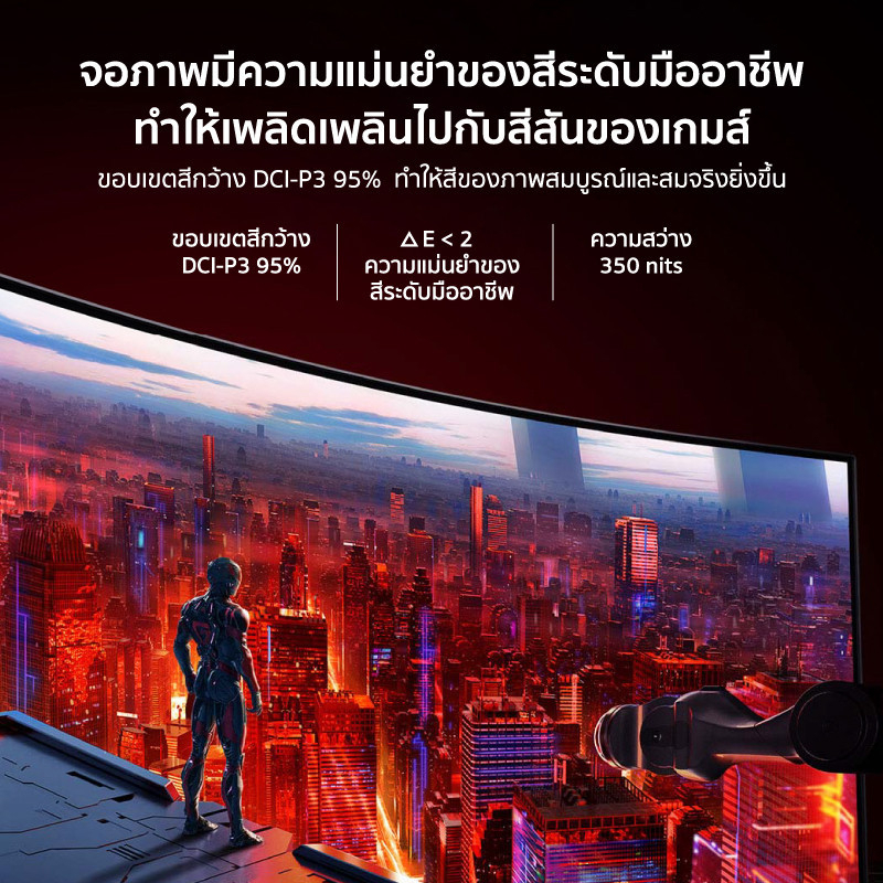 • ความโค้ง 1500R ให้มุมมองแบบพาโนรามา หน้าจอโค้งเล็กน้อย ทำให้ลดการบิดเบือนของภาพ ทำให้มองภาพได้ในมุมที่ดีที่สุด